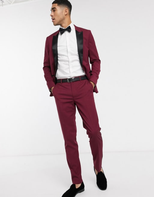 Traje ajustado de esmoquin en burdeos de ASOS DESIGN