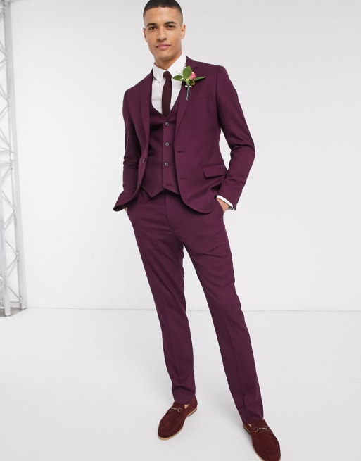 Traje ajustado en burdeos de ASOS DESIGN wedding