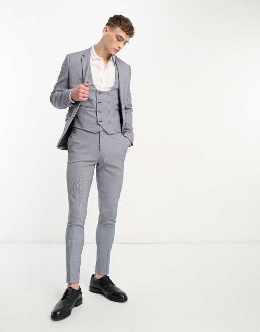 Traje azul marino de corte muy entallado con textura de ojo de perdiz de ASOS DESIGN Wedding