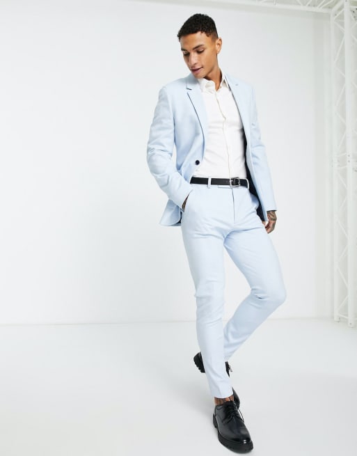 Traje azul muy entallado con estampado de pata de gallo de ASOS DESIGN