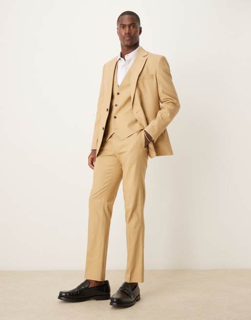 Traje beis de corte slim de mezcla de lino de ASOS DESIGN