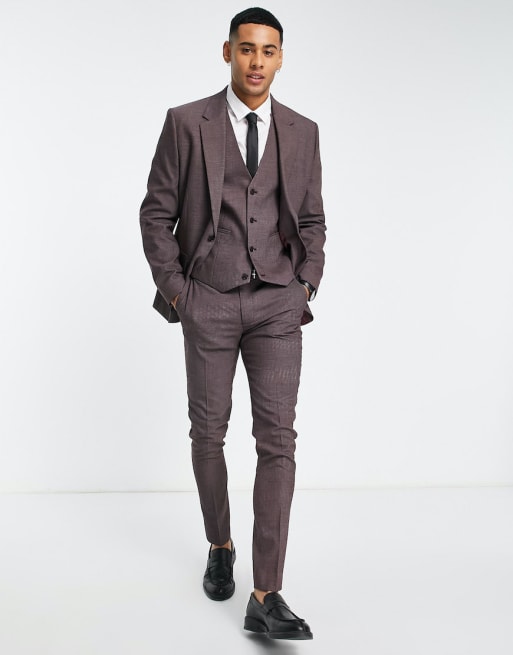 Traje burdeos entallado con textura punteada de ASOS DESIGN