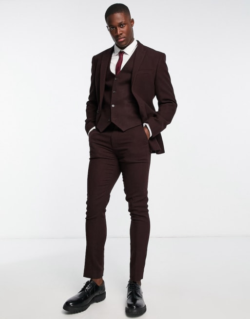 Traje burdeos muy entallado de mezcla de lana de ASOS DESIGN Wedding