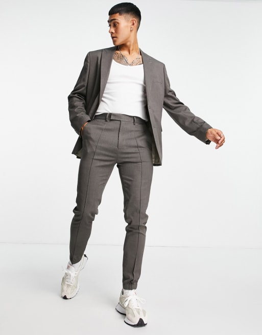 Traje color antracita de corte slim con acabado texturizado de ASOS DESIGN
