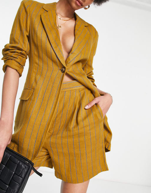 Traje color mostaza a rayas azules de lino de ASOS DESIGN Tall