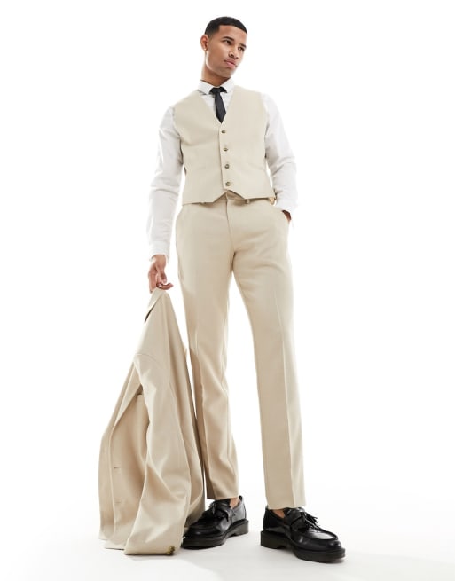Traje color piedra de corte slim de tejido microtexturizado de ASOS DESIGN Wedding
