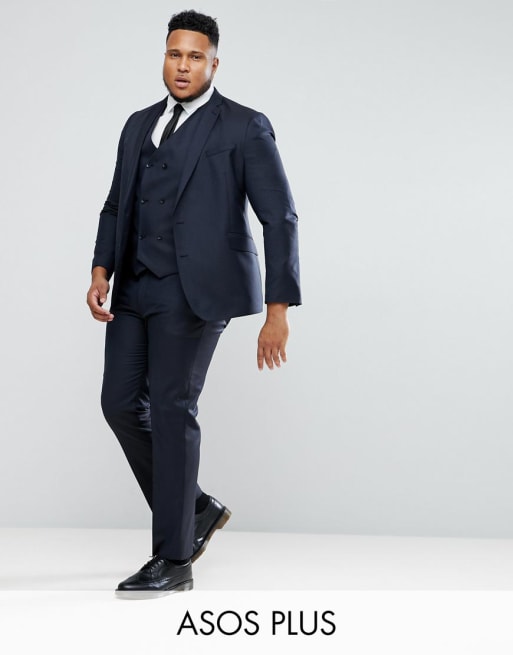 Traje de corte slim en lana 100% en azul marino de ASOS PLUS