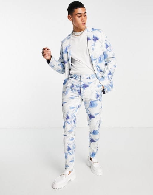Traje entallado con estampado blanco y azul de ASOS DESIGN