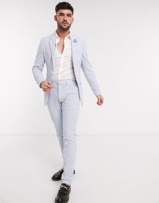 Traje entallado en azul claro con diseño de vichy en sirsaca de algodón de ASOS DESIGN Wedding