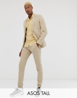 Traje entallado en crepé color piedra de ASOS DESIGN Tall