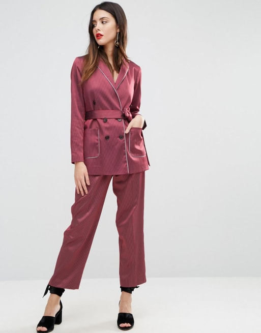 Traje estilo pijama a rayas con ribetes entubados de ASOS