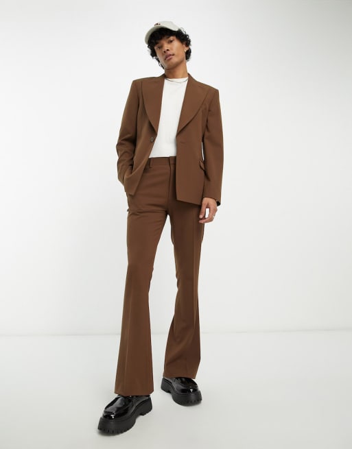 Traje marrón con solapas extragrandes de ASOS DESIGN
