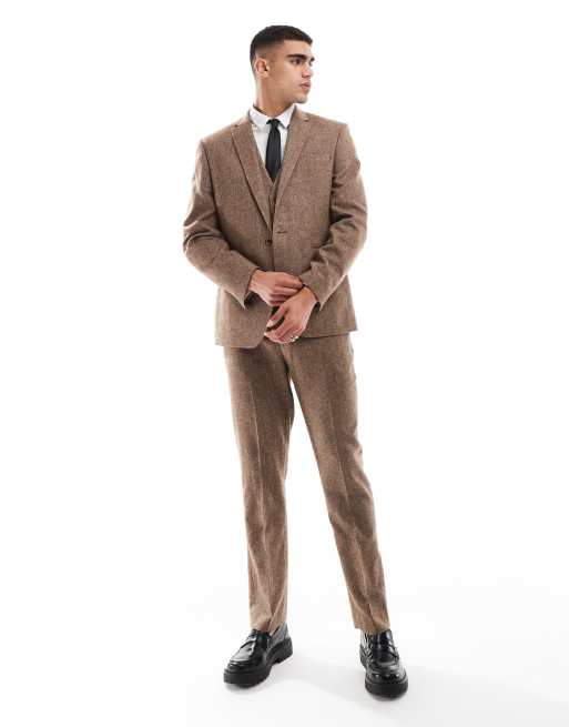 Traje marrón de corte slim de mezcla de lana de ASOS DESIGN