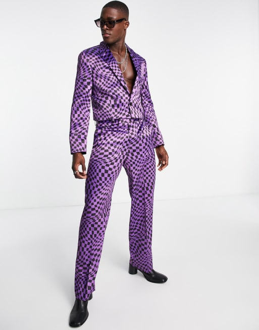Traje morado de pernera ancha a cuadros dameros ondulados de ASOS DESIGN