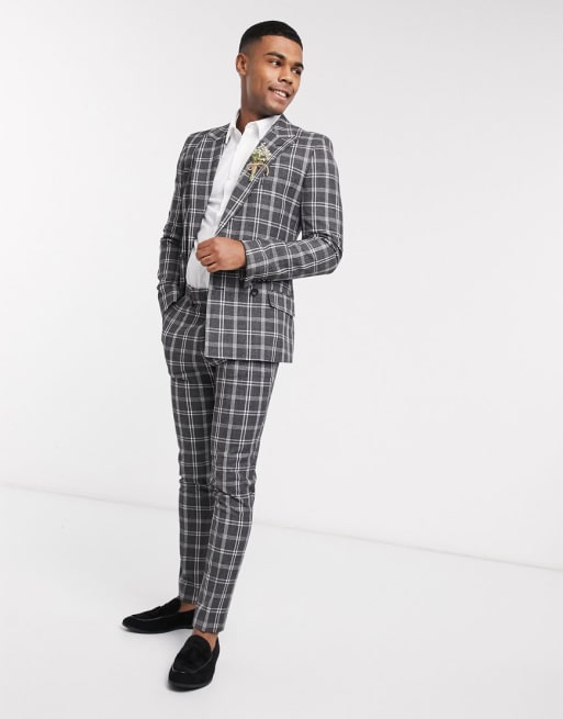 Traje muy ajustado de cuadros en gris marga de ASOS DESIGN wedding