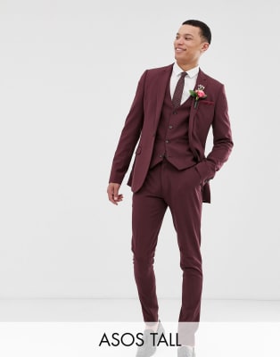 Traje muy ajustado en burdeos de ASOS DESIGN Tall