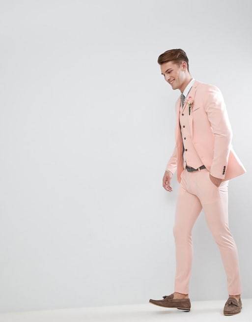 Traje muy ajustado en melocotón claro de ASOS Wedding