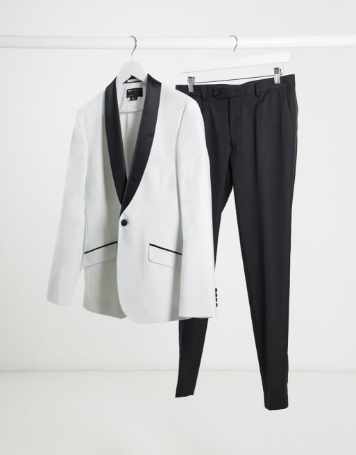 Traje muy entallado estilo esmoquin con solapa negra en blanco de ASOS DESIGN