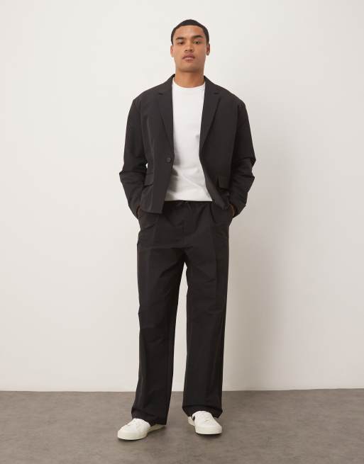 Traje negro de corte cuadrado y estilo casual de tejido técnico de ASOS DESIGN