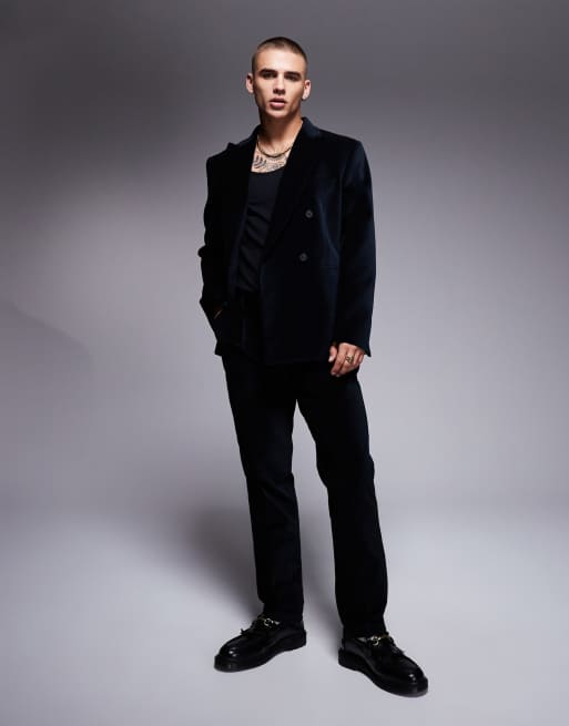 Traje negro de corte slim con doble botonadura de terciopelo de algodón de ASOS DESIGN