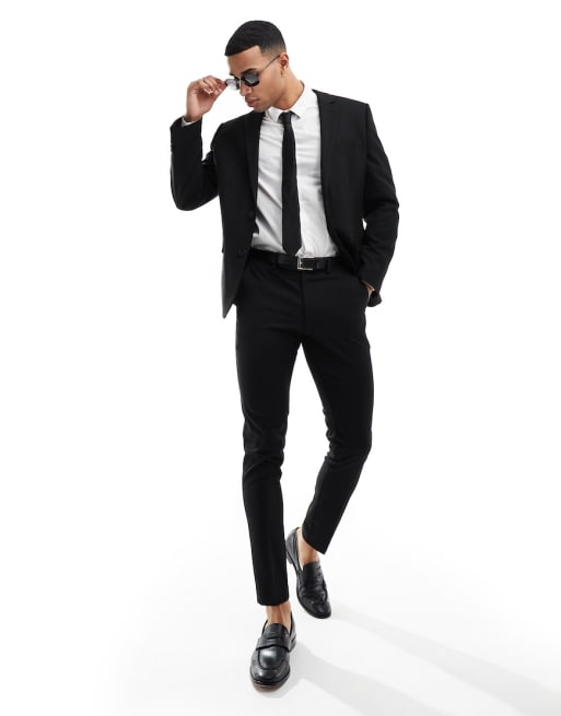 Traje negro entallado de sarga de ASOS DESIGN