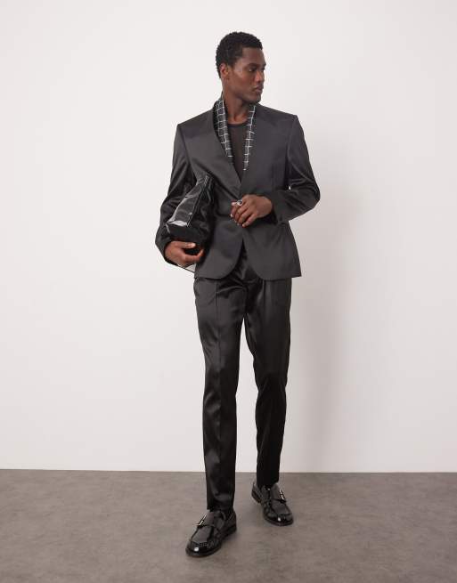 Traje negro entallado sin solapas de satén de ASOS DESIGN