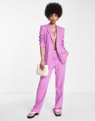 Traje rosa de corte slim recto de lino de ASOS DESIGN Tall