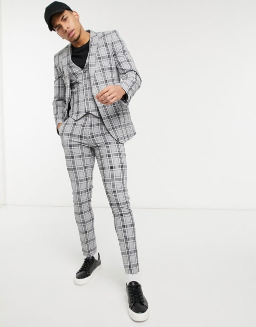 Traje superajustado gris de cuadros escoceses de ASOS DESIGN