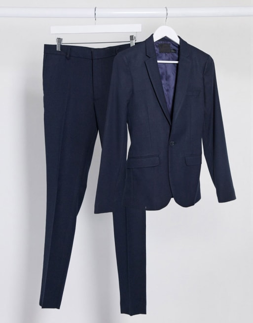 Traje superentallado azul marino de efecto lana de ASOS DESIGN Wedding
