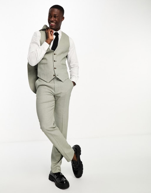Traje verde entallado con textura de ojo de perdiz de ASOS DESIGN Wedding