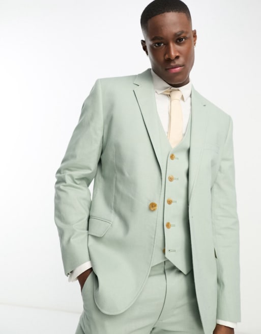 Traje verde salvia de corte slim de mezcla de lino de ASOS DESIGN