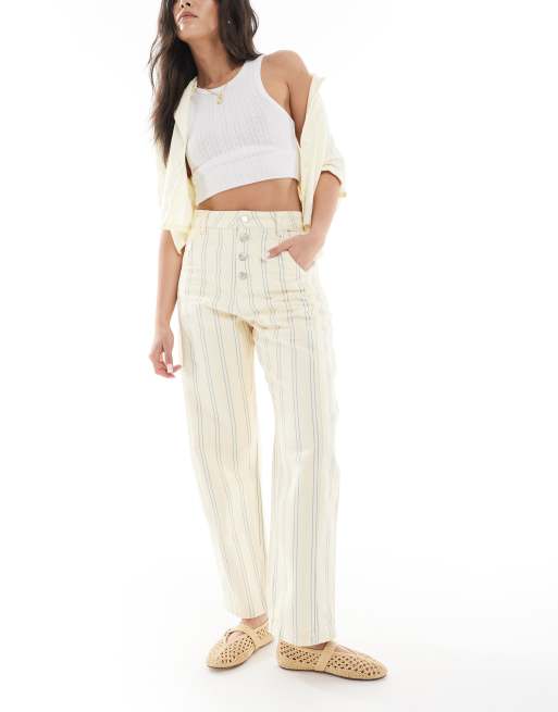 Vaqueros amarillo a rayas de pernera barrel de ASOS DESIGN