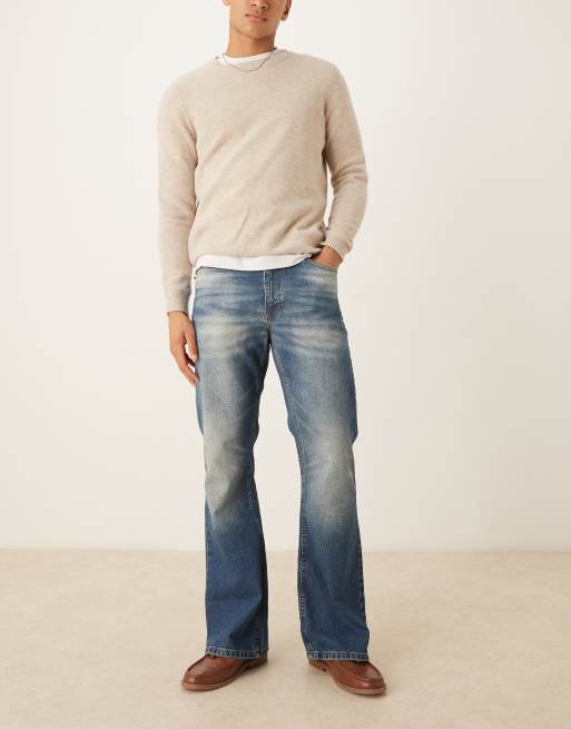 Vaqueros azules de pernera ancha acampanada con lavado medio tintado de ASOS DESIGN