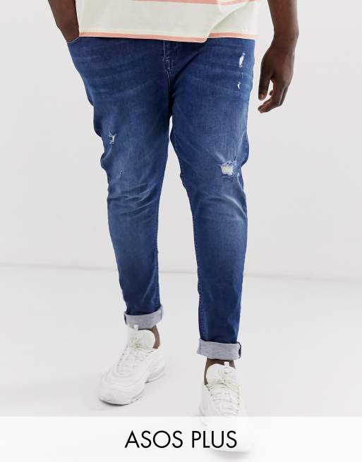 Vaqueros azules muy elásticos con abrasiones y efecto spray de ASOS DESIGN Plus