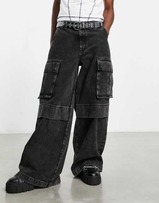 Vaqueros cargo de pernera muy ancha con lavado negro y detalle de panel de ASOS DESIGN