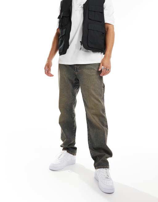 Vaqueros de estilo carpintero de pernera recta con tintado envejecido de ASOS DESIGN