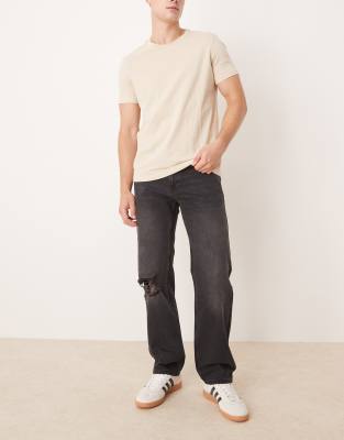 Vaqueros de pernera recta con lavado negro y diseño rasgado de ASOS DESIGN