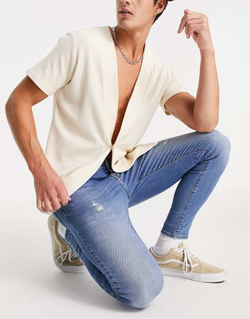 Vaqueros elásticos de corte superpitillo con lavado medio y abrasiones de ASOS DESIGN