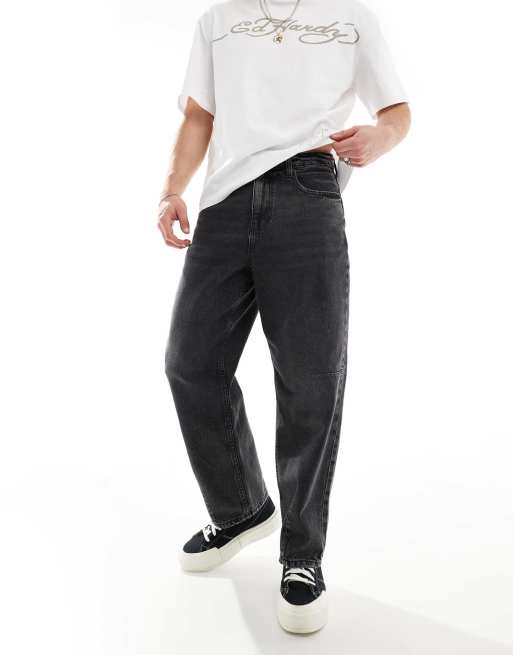 Vaqueros negros de corte tapered con jaretas de ASOS DESIGN