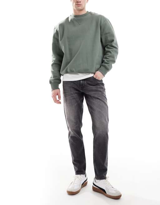 Vaqueros negros elásticos de corte tapered con lavado envejecido de ASOS DESIGN