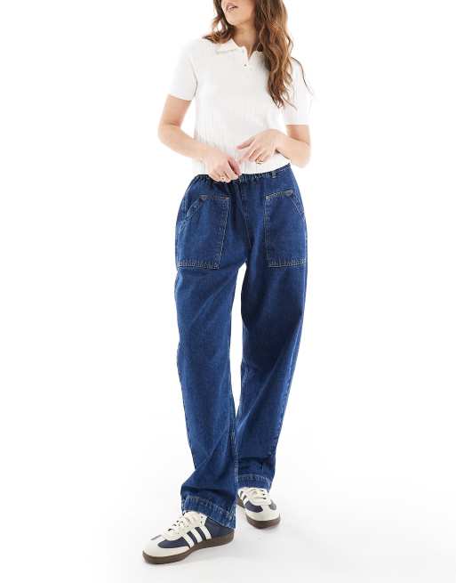 Vaqueros sin cierres de pernera barrel con lavado oscuro medio de ASOS DESIGN