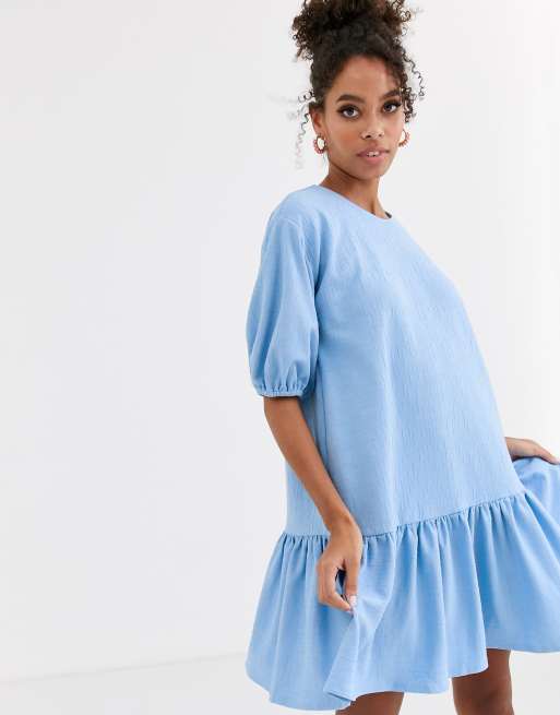 Vestido amplio con textura y bajo a capas en azul de ASOS DESIGN
