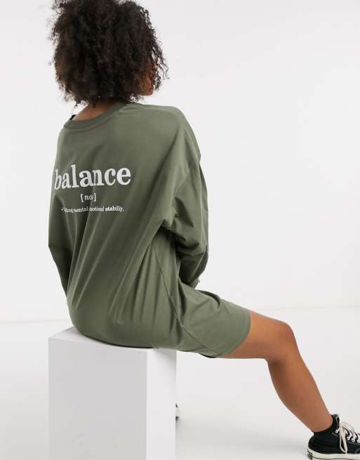 Vestido camisero color salvia oscuro extragrande de manga larga con texto estampado en la espalda de ASOS DESIGN