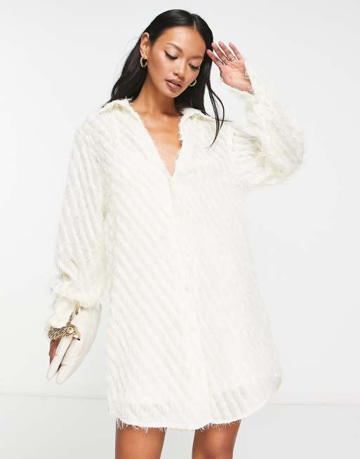 Vestido camisero corto blanco holgado de tejido mullido texturizado de ASOS DESIGN
