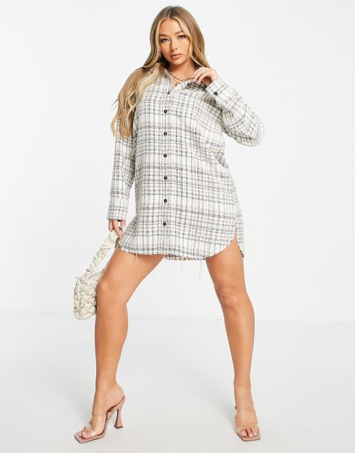 Vestido camisero corto estilo boyfriend con botones a presión de bouclé de ASOS DESIGN