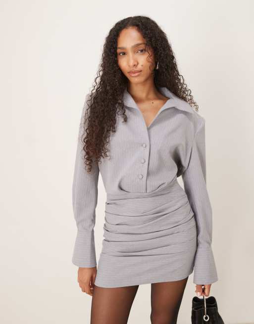 Vestido camisero corto gris oscuro con raya diplomática y detalles cruzados de ASOS DESIGN