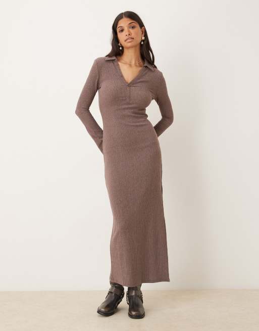 Vestido camisero midi marrón de tejido texturizado de ASOS DESIGN