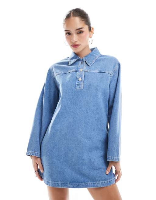 Vestido camisero vaquero azul medio de ASOS DESIGN
