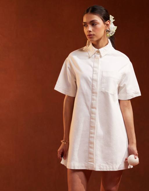 Vestido camisero vaquero blanco de manga corta de ASOS DESIGN