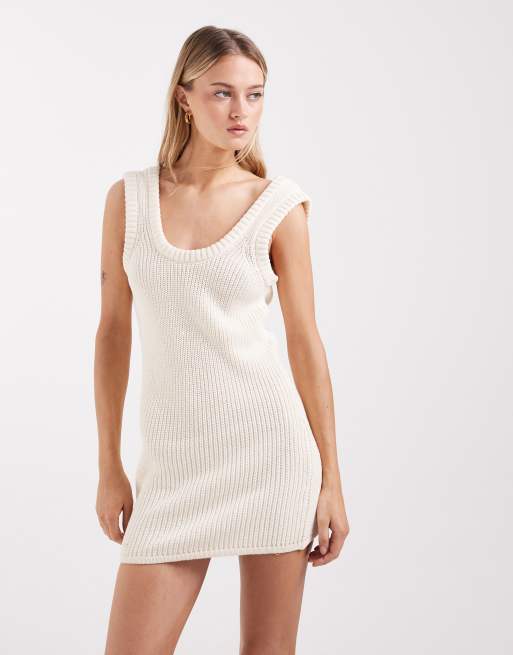 Vestido color crudo de canalé moldeado de bouclé de algodón de ASOS DESIGN
